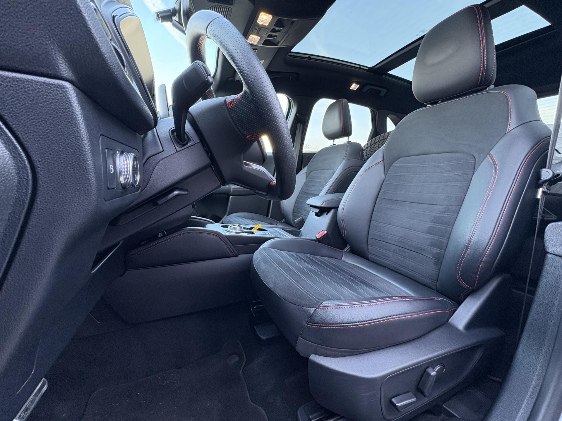De eendrachtige samenwerking van de benzinemotor en de elektromotor geeft deze Ford Kuga zijn geweldige rijkwaliteiten. Geen gerommel bij het inladen; één druk op de knop en de elektrisch bedienbare achterklep gaat open. En precies zo gemakkelijk is het met het elektrisch bediende glazen panorama dak! Zelfs als het buiten ijzig koud is, kunnen zowel de bestuurder als de passagiers op de achterbank snel opwarmen, dankzij de verwarmbare stuurwiel en de achterbankverwarming. Comfortabel zitten, ook als de rit onstuimig is? Dat kan met de sportstoelen. De uitmonstering van deze auto wordt gecompleteerd door onder meer 18 inch lichtmetalen velgen, LED koplampen, sportonderstel, geluidsisolerende ramen, in delen neerklapbare achterbank en LED-achterlichten.