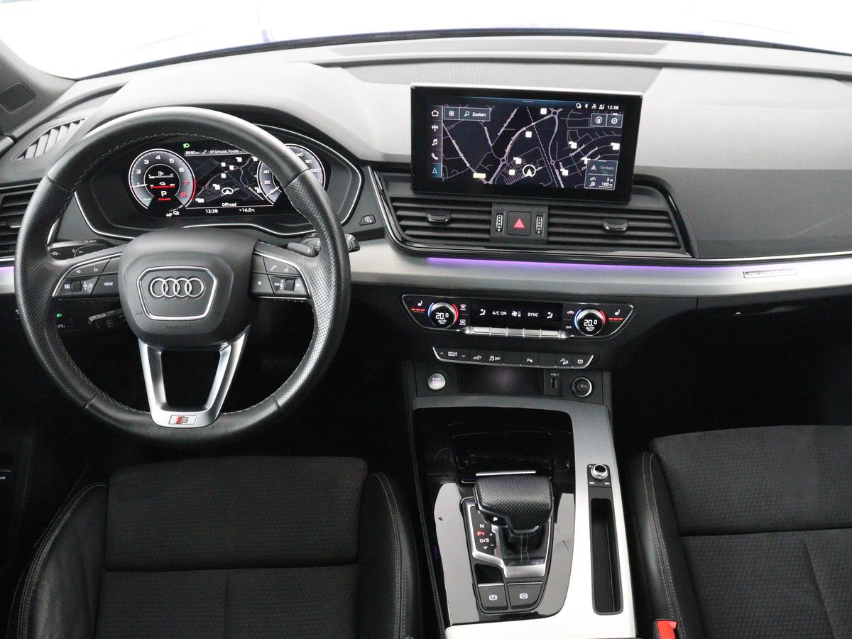 Laat u niets wijsmaken, deze Audi Q5 biedt alles wat u van een auto verlangt. Deze auto komt uit 2021. Voor liefhebbers van rijplezier is de S-Line styling een belangrijke reden om voor deze auto te kiezen. Dit is een van de betere hybride auto's. Ideaal rijden door de combi van elektromotor en verbrandingsmotor! Ruimte? Ja hoor! Open maar eens de elektrisch bedienbare achterklep en check de bagageruimte; stap daarna in om het weidse gevoel te ervaren dat het elektrisch bediende glazen panorama dak u bezorgt. Lekker hoor, die verwarmbare voorstoelen. Helemaal op koude dagen. De sportstoelen geven u veel zitsteun. Ook op de minder vlakke wegen zoeft u lekker door dankzij de luchtvering. De slimme koplampen gebruiken de allernieuwste matrix LED-verlichting. Altijd maximaal zicht, nooit verblinding bij de tegenligger. Ook 21 inch lichtmetalen velgen, warmtewerend glas, in delen neerklapbare achterbank, LED-achterlichten en verwarmde ruitensproeiers horen tot de voorzieningen op deze auto.